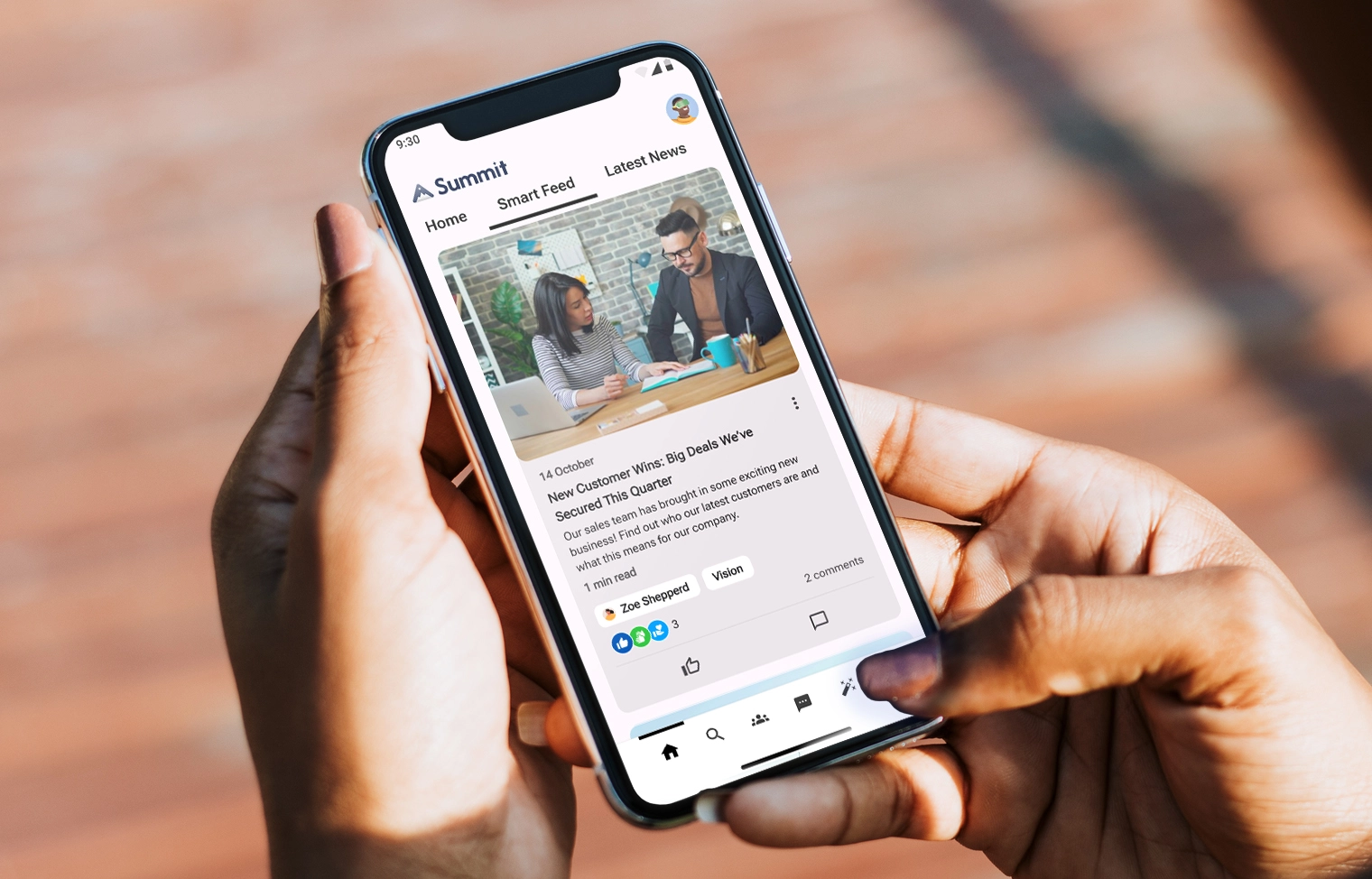 Humans communicate with empathy. Algorithms deliver with precision. Oak Engage’s intelligent intranet newsfeed combines the best of AI and UX. This is a real-time, mobile accessible personalised news feed delivering greater relevance, improved engagement and propelling peak performance in the workplace.