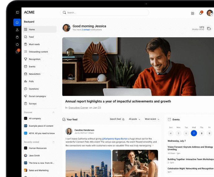 A modern intranet should bring everything into one clear, accessible hub so your people can spend more time actually working and less time rummaging through folders or hunting for lost emails. With teams now scattered across HQs, frontlines, living rooms, and everywhere in between, having one place that keeps everyone connected isnât a nice-to-have anymore, itâs essential.