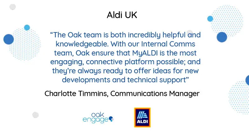 Aldi: Aldi were on the search for a tool to revolutionise their communication. Oak helped them launch their intranet app for desktop and mobile ‘MyAldi’.