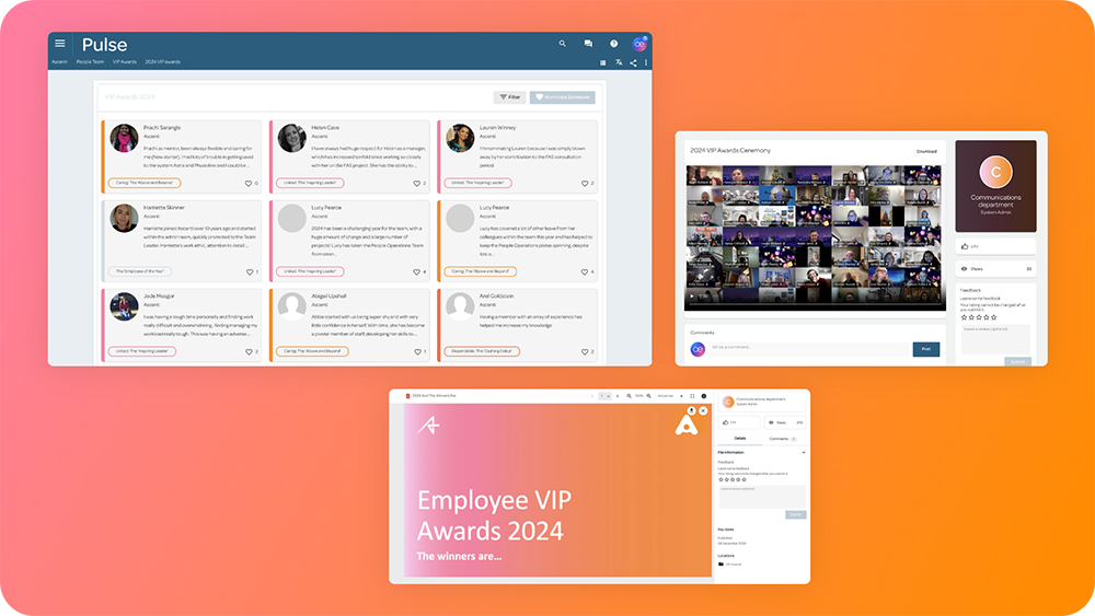 “ “Employees’ nomination writing has improved because of the questions we are asking and the fact that they can see other people’s nominations as examples. We had really positive feedback from the new and improved 2024 awards and we are excited to continue to use this feature.” Paige Hatcher Communications Officer at Ascenti Group